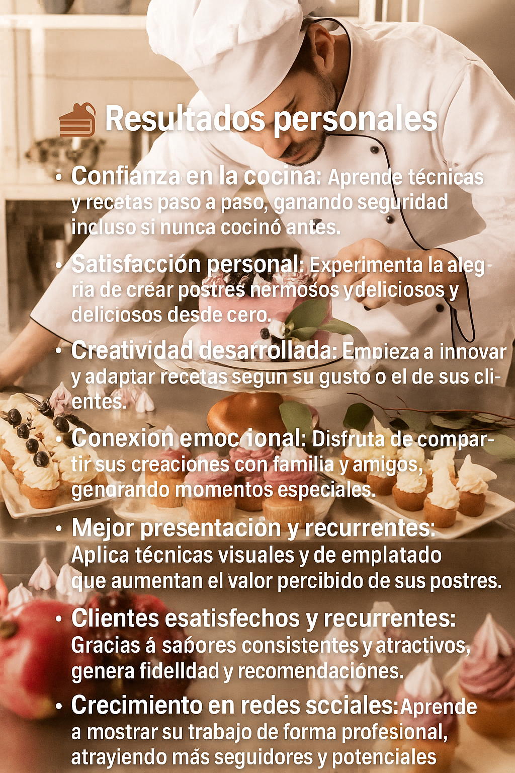 "Nunca había hecho un postre en mi vida, pero con este e-book empecé a cocinar para mi familia. Las recetas son tan claras que perdí el miedo a la cocina. Ahora incluso vendo mis tortas los fines de semana. ¡Fue una inversión que cambió mi vida!"